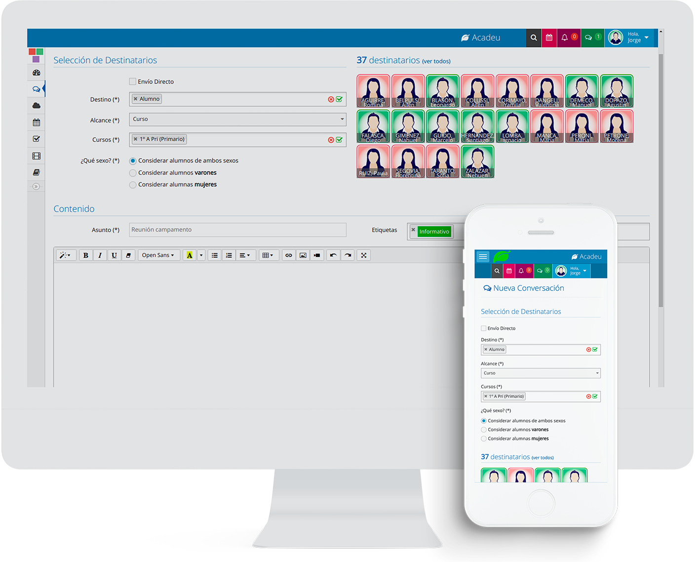 El software de Acadeu nos resulta sumamente útil, a nosotros, a los chicos y a los padres. ¡Lo confirmamos año a año con sus dichos! Ante la mínima dificultad están ahí para ayudarnos.