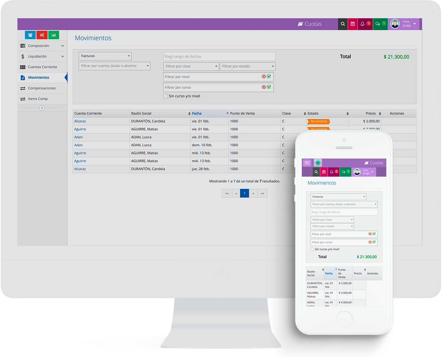 Liquidación automática y emisión de factura electrónica. Seguimiento más eficiente de cobranzas y deudores. Cuenta corriente por familia, con acceso de lectura programable.