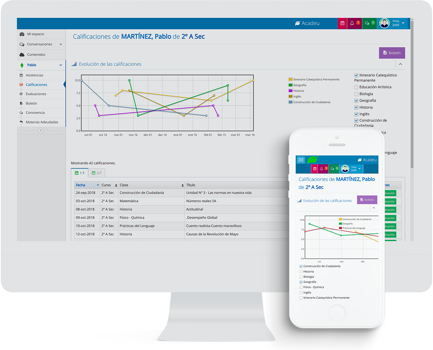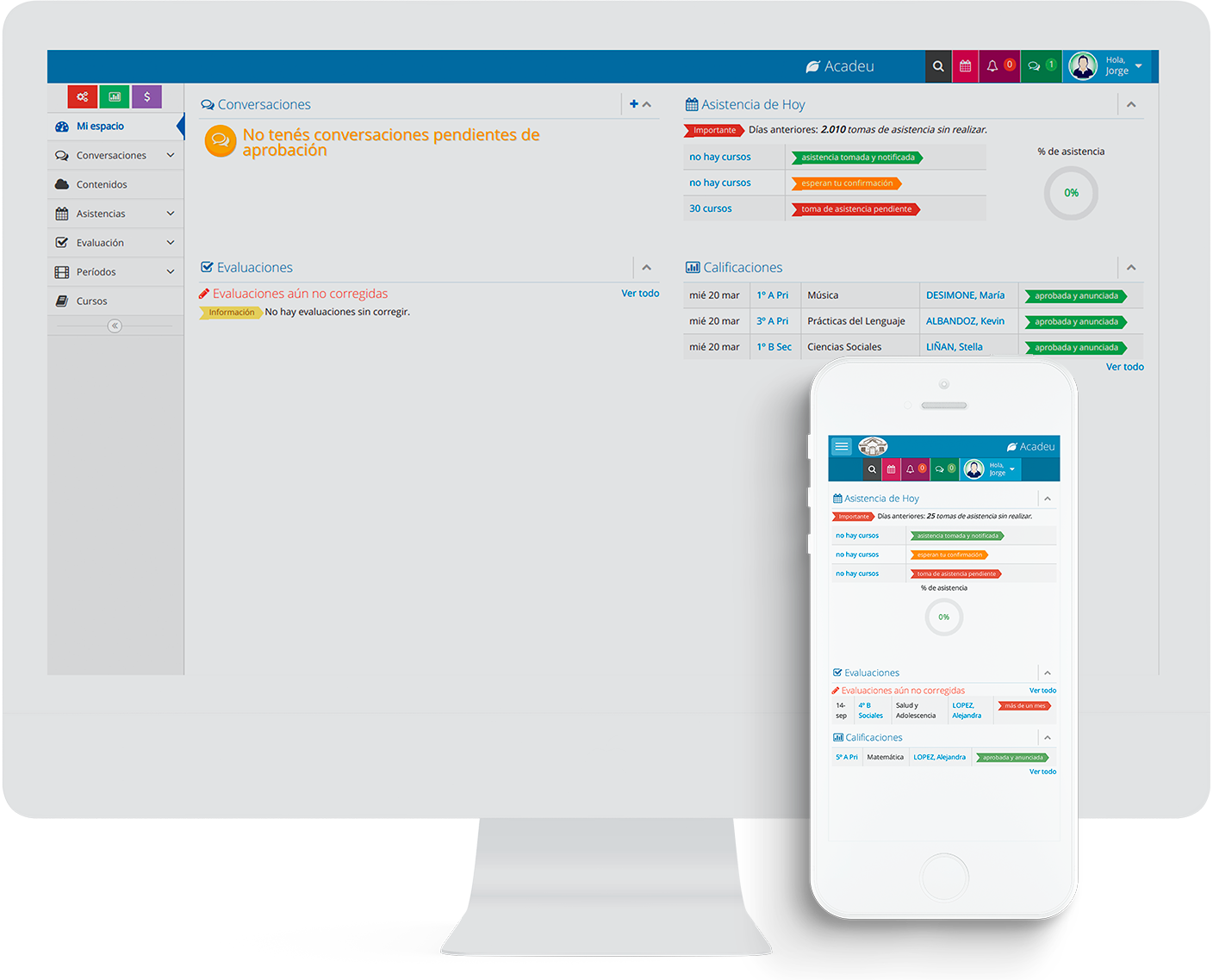 Acadeu es un sistema de administración escolar online que conecta directivos, docentes, familias y estudiantes en una plataforma ágil, segura y 100% adaptable.