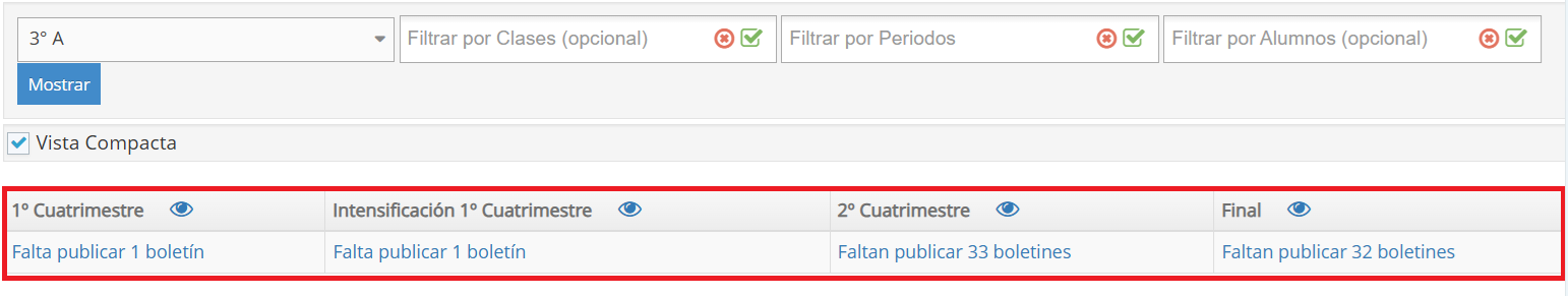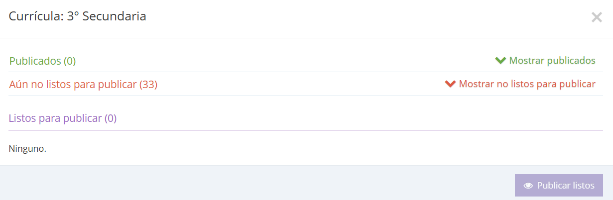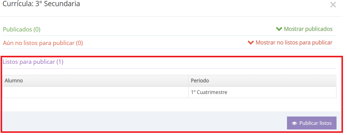 En caso de que los boletines estén listos para publicar, se habilitará el botón violeta "Publicar listos":