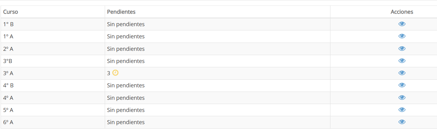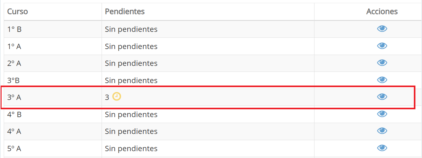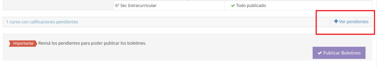 Haciendo clic en "+ Ver pendientes" se desplegará el listado que informa el número de calificaciones pendientes en cada curso: