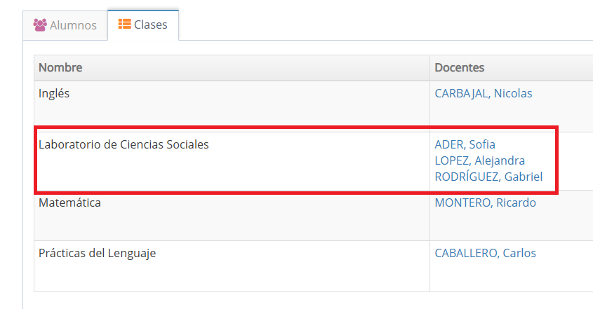 Dentro de los cursos existirá sólo la clase Laboratorio de Ciencias Sociales que tendrá asignados a los docentes de las que antes eran tres clases por separado.