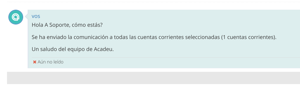 En caso de presionar el botón OK, Acadeu notificará vía mensajería a cada familia y luego te compartirá un resumen de los envíos realizados en el apartado de conversaciones recibidas: