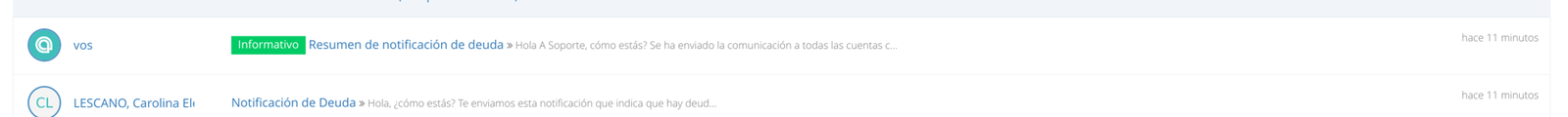 Envío de notificaciones de deudas
